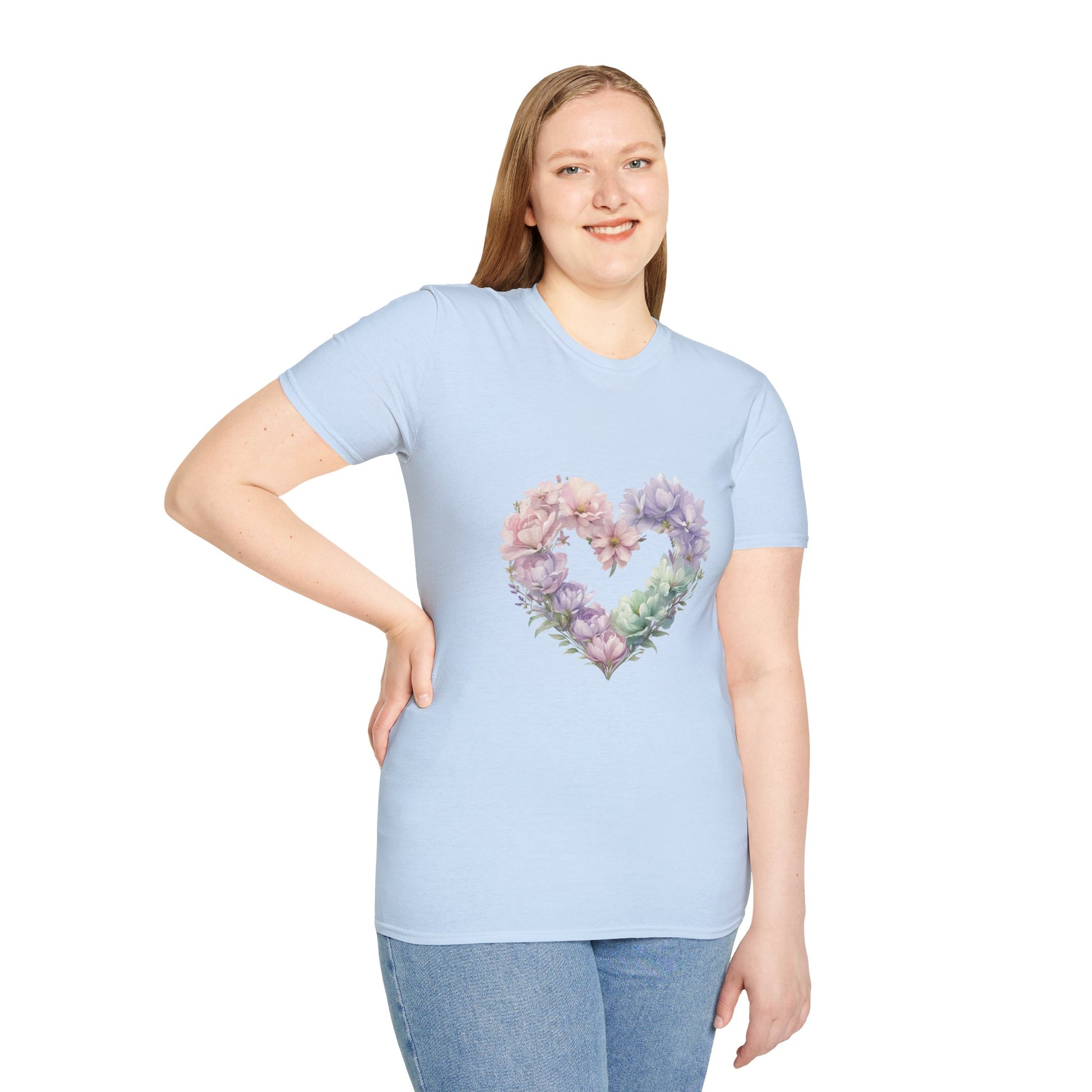 Floral Heart Unisex T-Shirt | Softstyle Tee for Floral Lovers | Perfect Gift for Birthdays, Anniversaries, or Casual Wear