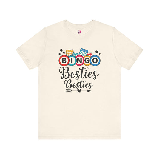 Bingo Besties Tee - Fun Unisex Jersey Short Sleeve Shirt for Game Nights, Friendship Gifts, Birthday Parties, Casual Wear